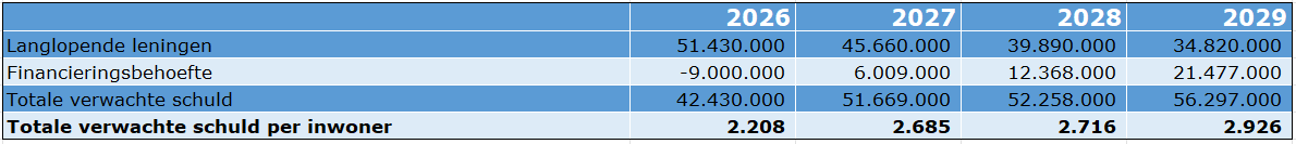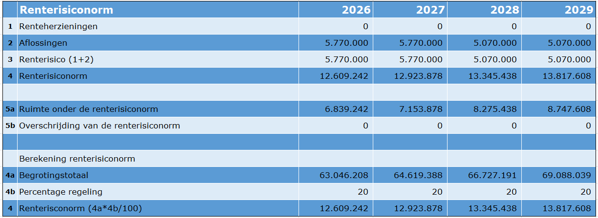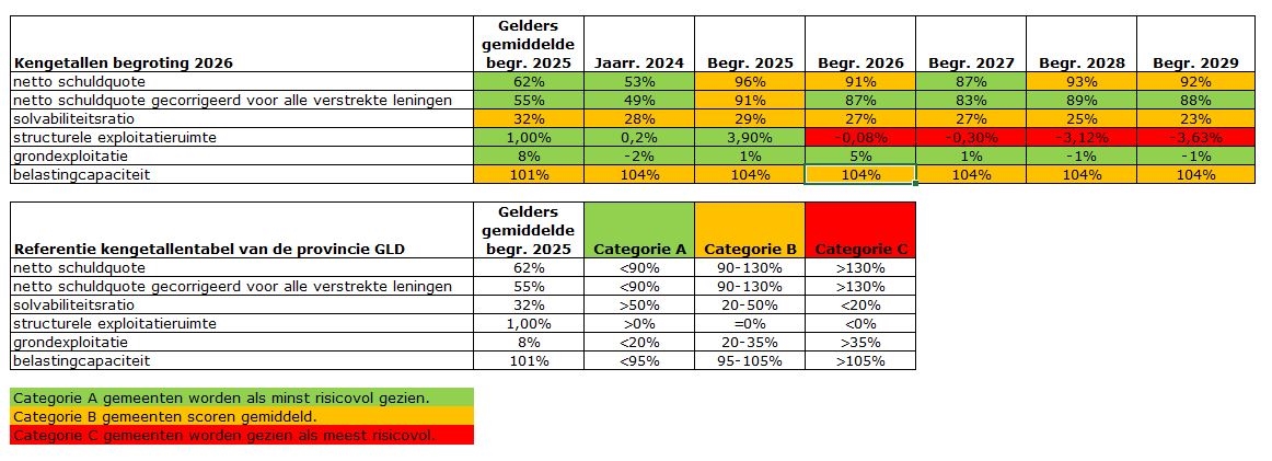 De meerjarige kengetallen zijn redelijk stabiel waarbij opvalt dat de schuldquote wisselt tussen goed en gemiddeld en de solvabiliteitsratio op termijn een lichte daling laat zien. De financiële risico’s van de grondexploitaties zijn in vergelijk met andere gemeenten erg laag. Het kengetal van de structurele exploitatieruimte laat voor alle jaren vanaf 2026 een negatief zien. De oorzaak is dat het rijk kortingen heeft toegepast in het gemeentefonds en de gemeente hierdoor ervaart dat er te weinig middelen beschikbaar zijn om de taken goed uit te kunnen voeren.