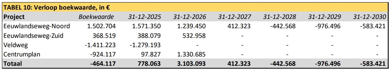 In de begroting 2025 werd dit risico ingeschat op 10% van de garantstelling. Hoewel de grondverkopen achterblijven bij de bijgestelde verwachting zoals opgenomen in de begroting 2025 van het bedrijvenpark H2O blijft het risico klein. Het risicobedrag 2025 is vastgesteld op 10% van het gedeelte van het huidige rekening courant krediet waarvoor wij garant staan zijnde € 397.000,-.